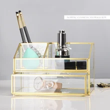 Buy Now 2020 New Fashion Glass Makeup Brush Storage Box Jewelry Box Cosmetic Tube Clear/Gold Makeup Organizer With Drawer before expired and You will save 32% today