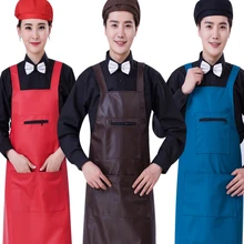 Buy Now 1-5 pcs PU Leather Waterproof Oil-Proof Kitchen Chef Apron For Women Man Adult Sleeveless Apron Restaurant Waitress With Pocket before expired and You will save 45% today