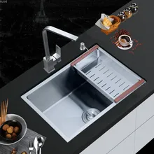 Buy Now 6 Sizes Available 4MM Thicken SUS304 Stainless Steel Handmade Sink Basin Kitchen Sink Set Metal Single Bowl Sink with Basket before expired and You will save 18% today