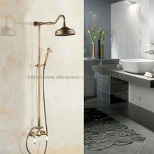Buy Now Antique Brass Wall Mount 8 inch Bathroom Shower Faucet Mixer Taps Dual Handle with Hand Held Shower Nan512 before expired and You will save 38% today