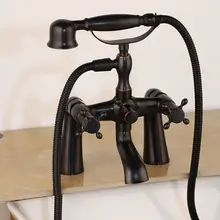 Buy Now Bathroom Oil Rubbed Bronze Clawfoot Bathtub Faucet Deck Mounted Double Handle Tub Faucet With Handheld Showers ZD1124 before expired and You will save 44% today