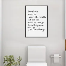 Buy Now Bathroom Quote Sign Print Black White Poster Everybody Wants to Change the World Toilet Paper Wall Art Canvas Painting Decor before expired and You will save 45% today
