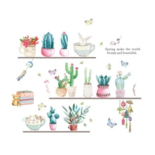 Buy Now Bonsai Cactus Flowers Butterfly Wall Stickers For Home Decor Living Room PVC Wall Decals DIY Mural Art Decoration Accessories before expired and You will save 5% today
