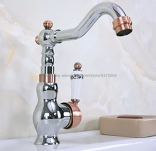 Buy Now Deck Mounted Single Handle Bathroom Sink Mixer Faucet Polished Chrome And Red Copper Hot and Cold Water Mixer Tap Nnf912 before expired and You will save 38% today