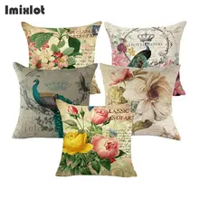 Buy Now Fashion Cotton Linen Cushion Cover Peacocks Flower Pattern Throw Pillow Cover for Sofa Decorative Pillowcase 45x45 Home Decor before expired and You will save 30% today