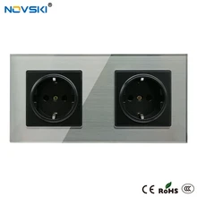 Buy Now Gun Black Glass Panel Power Socket Quintuple Outlet German Plug Grounded, 16A EU Standard Electrical Socket, 15 Years Warranty before expired and You will save 40% today