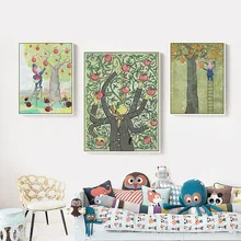 Buy Now Home Decor Modular Pictures Canvas Printed Painting Nordic Farmer Work Orchard red fruit cartoon boy nursery Kids Children Room before expired and You will save 40% today