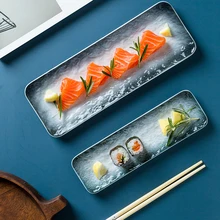Buy Now Japanese Style Water Ripple Ceramic Long Plate Porcelain Sushi Plate Creative Dessert Plate Restaurant Household before expired and You will save 30% today