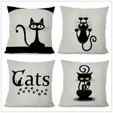Buy Now Square Cotton Linen Black Climbing Cat Animals Printed Decorative Throw Pillows Home Decor Cushion For Sofas No Core before expired and You will save 30% today