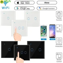 Buy Now US/EU/AU Standard Touch Switch Smart Light Switch Panel Wall interruptor 1/2/3 Gang wifi Voice Work with Alexa Google Home APP before expired and You will save 10% today